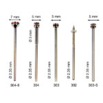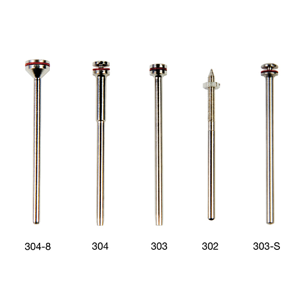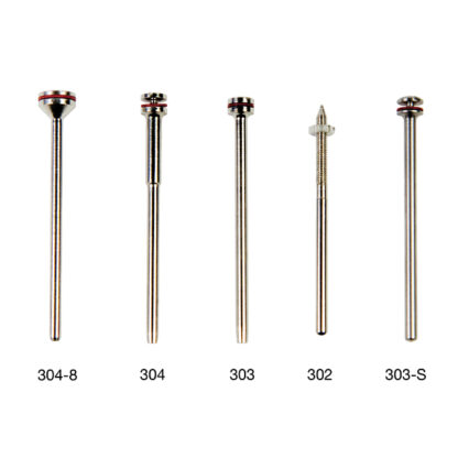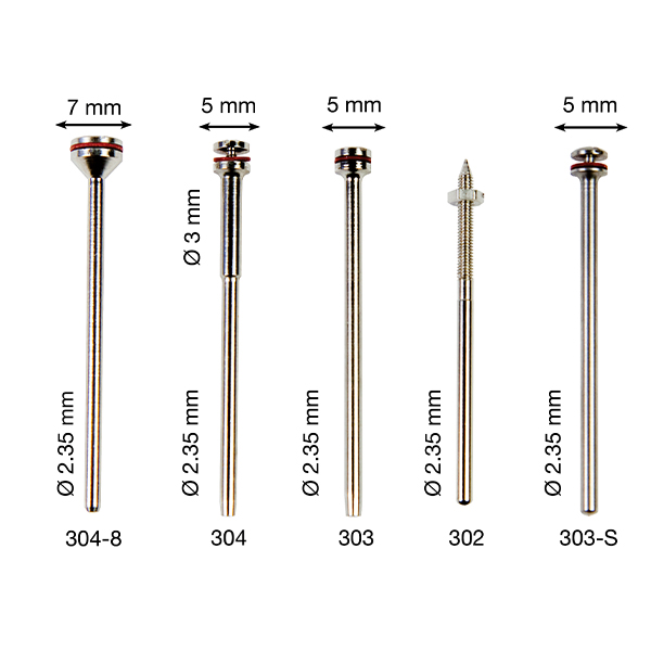 MANDRIN 304-8 POIGNEE 2,35 mm. TETE 7 mm. (10 UNITES), MANDRIN 304 POIGNEE 2,35 mm. TETE 5 mm. (10 UNITES), MANDRIN 303 POIGNEE 2,35 mm. TETE 5 mm. (10 UNITES), MANDRIN 302 POIGNEE 2,35 mm. AVEC ECROU (10 UNITES), MANDRIN 303-S EN ACIER INOX. 2,35 mm. x 5 mm. (10 UNITES)