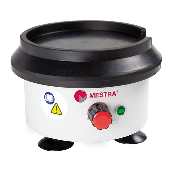 La surface de travail est en caotchouc posé sur un corps métallique, avec un renfoncement pour placer le porte-empreinte.