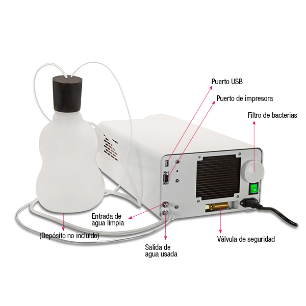 • Puerto de impresora: Se utiliza para conectar una impresora externa e imprimir el informe del ciclo automáticamente.