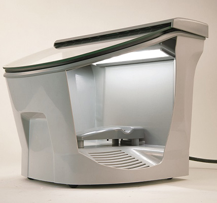 La posición de trabajo se ha estudiado minuciosamente para conseguir un producto cómodo y funcional. La generosa ventana de visión, la iluminación LED multipunto que elimina sombras a la vez que ofrece una tonalidad cromática similar a la luz solar, la útil astillera que permite descansar las manos durante las labores de pulido, el soporte para micromotor La caja de trabajo Orión se adapta sin problemas a las necesidades de los profesionales dentales.