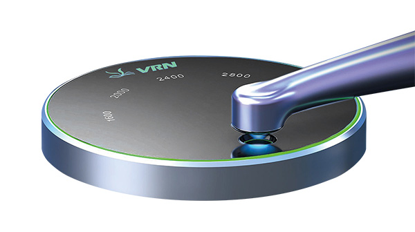 Tiene un cabezal multi-LED avanzado, compuesto por cuatro pastillas independientes. Cada una emite a una frecuencia distinta, logrando un espectro de luz excepcionalmente amplio (385 nm a 515 nm). Esto asegura la polimerización eficaz en tiempo récord, de prácticamente la totalidad de los materiales dentales disponibles en el mercado.