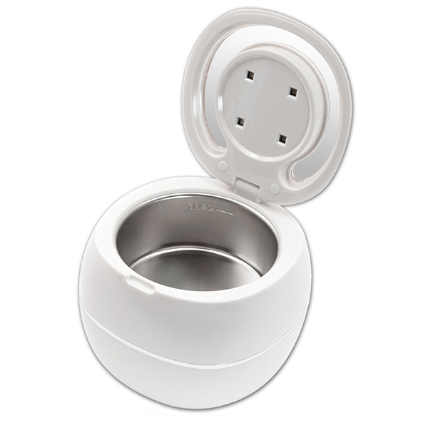 Aparato especialmente diseñado para la limpieza de retenedores, alineadores, cepillos de dientes, protectores bucales, cubetas de blanqueamiento, prótesis dentales, etc. También puede ser empleado como un limpiador de artículos de joyería. Su potencia de 28 W. asegura una eficiente limpieza en apenas unos minutos. La lampara UV-LED ubicada en la tapa, sirve para desinfectar los elementos introducidos en la cuba al mismo tiempo que se limpian.
